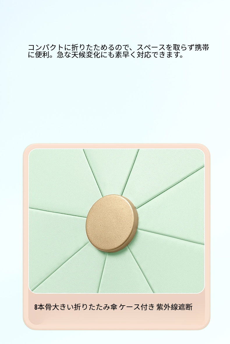 8本骨大きい折りたたみ傘 ケース付き 紫外線遮断