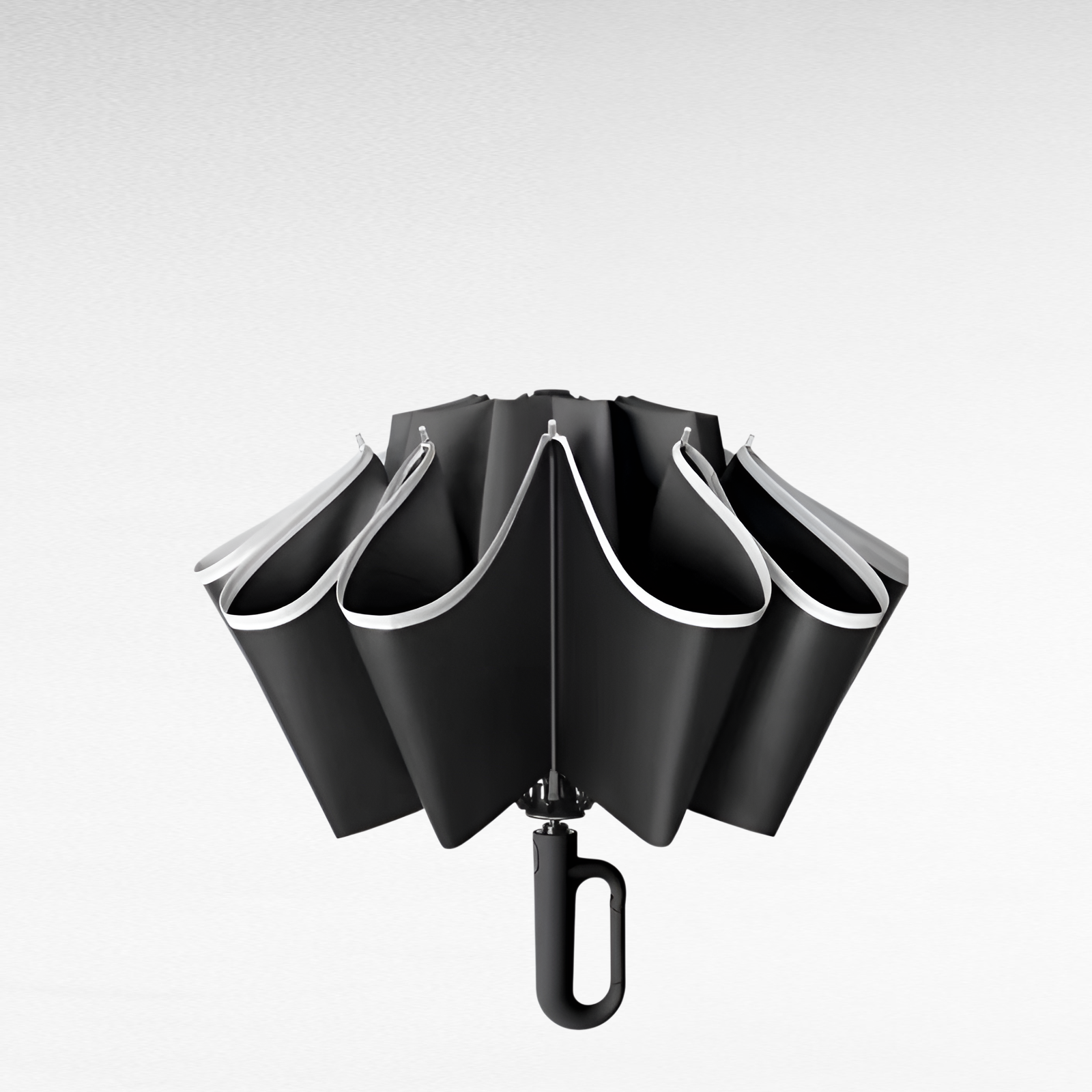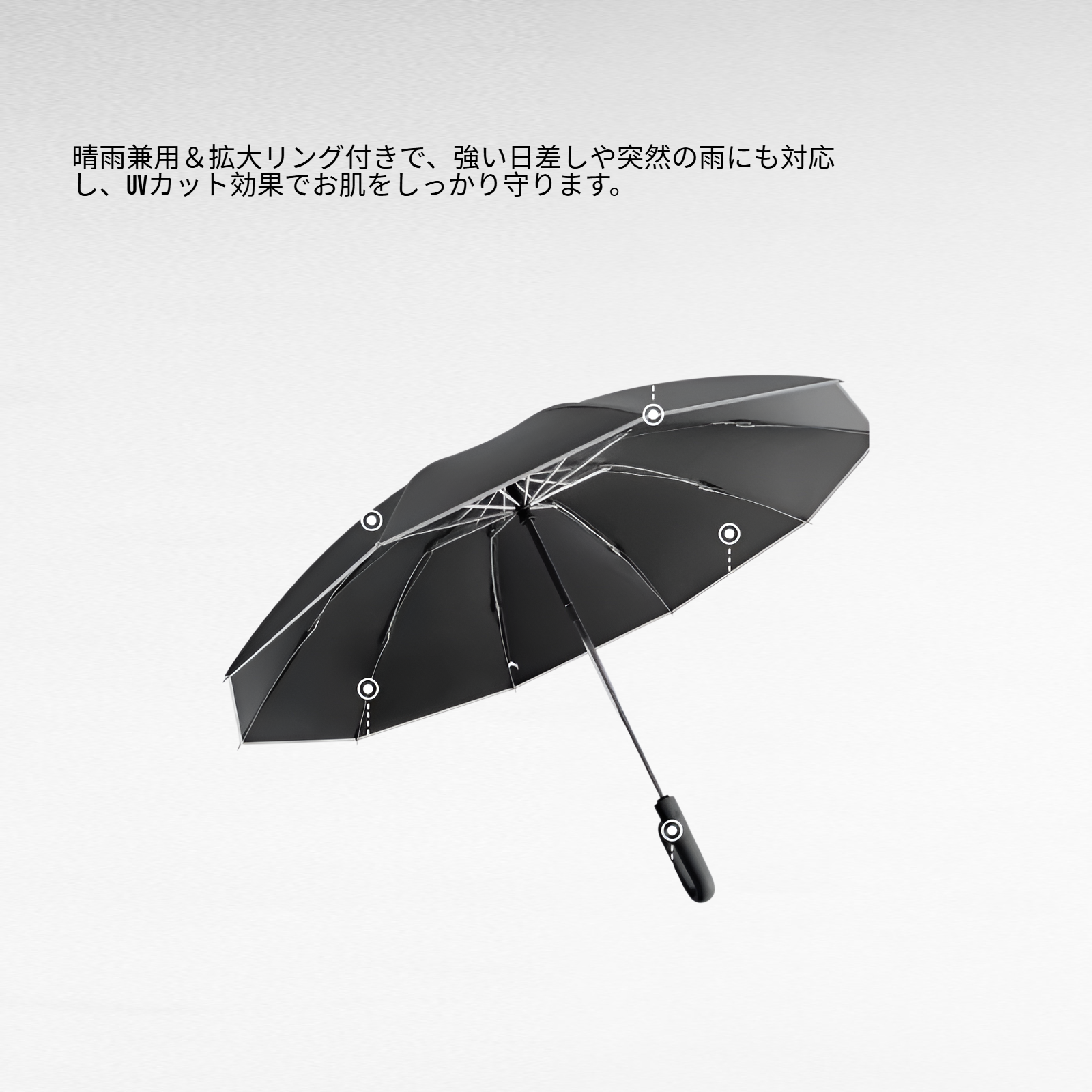 逆自動折りたたみ傘 晴雨兼用 拡大リング付き 黒糊 日焼け止め傘