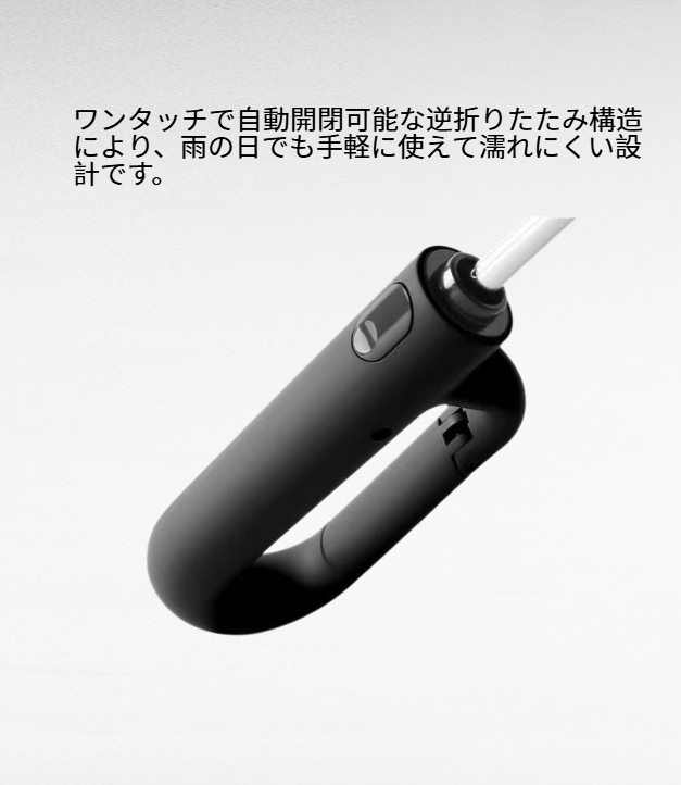 ● ワンタッチで自動開閉可能な逆折りたたみ構造により、雨の日でも手軽に使えて濡れにくい設計です。