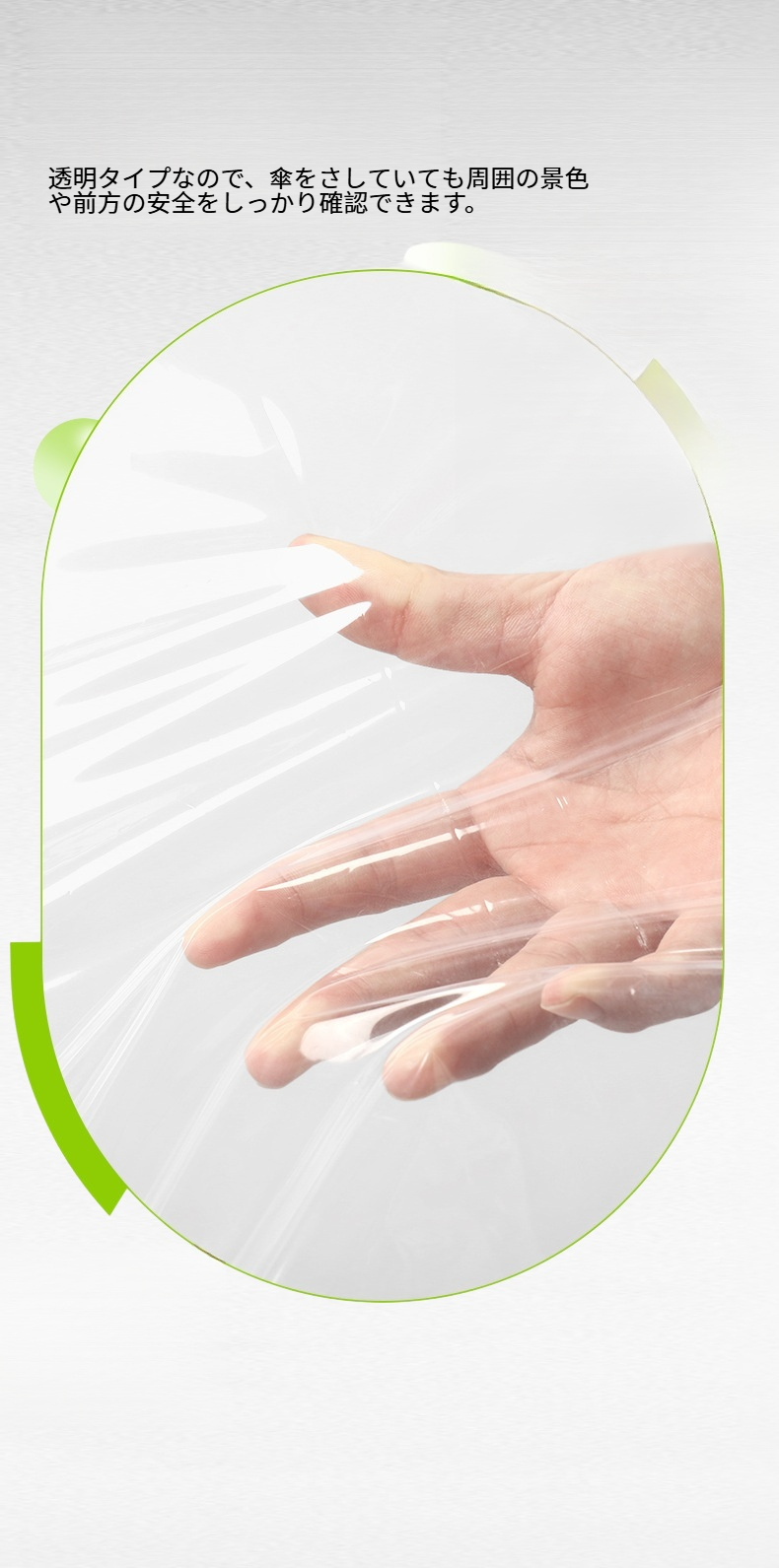 ● 透明タイプなので、傘をさしていても周囲の景色や前方の安全をしっかり確認できます。