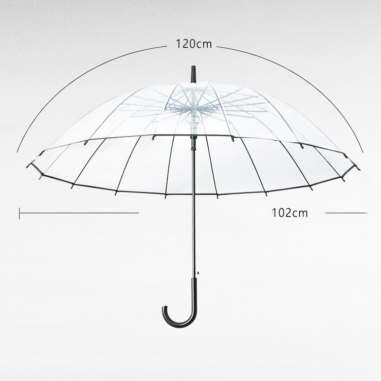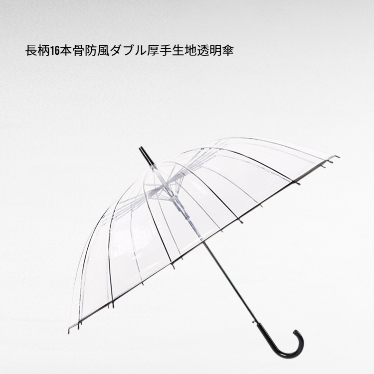● 強風にも負けない16本骨構造で、耐久性と安定感を両立した高品質な透明傘です。